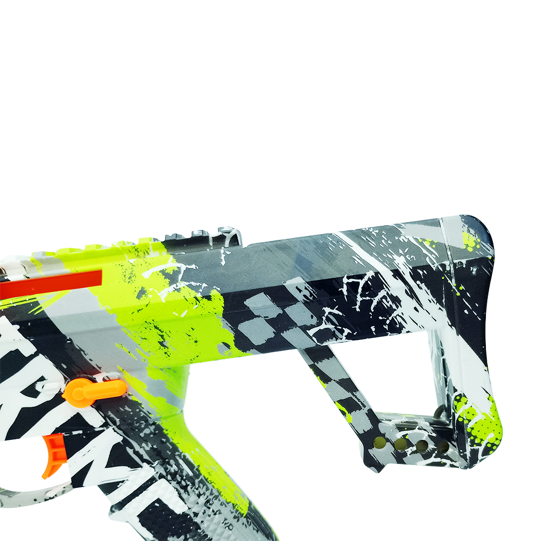 Vive la emoción de la acción con la pistola Super Sharpshooter Elite. Su diseño moderno con detalles en camuflaje y colores vibrantes ofrece una experiencia de juego divertida y realista. Ideal para juegos al aire libre, esta pistola incluye depósito superior transparente y un potente sistema de disparo que lanza proyectiles de agua o esferas tipo “water bomb”.